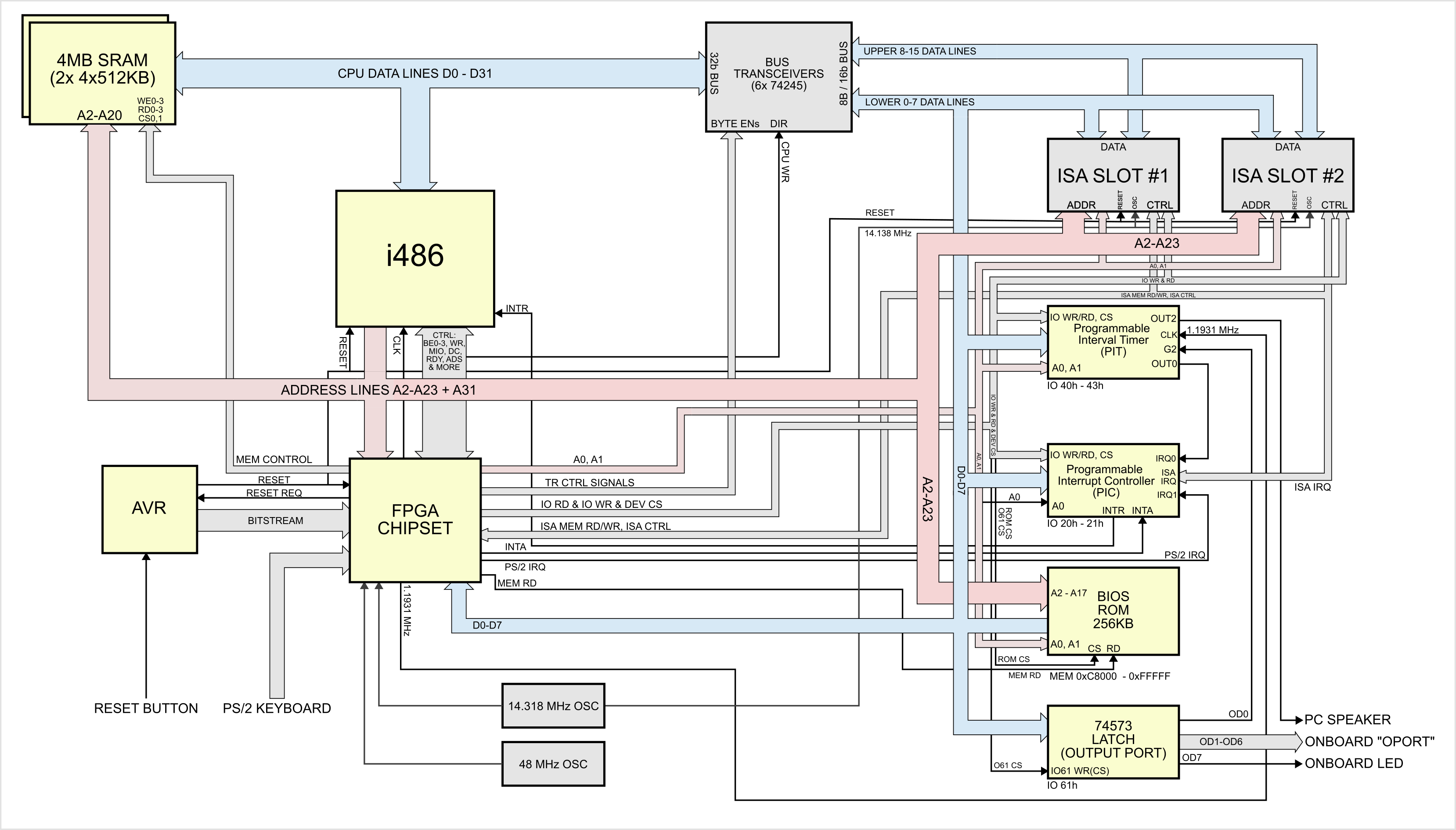 - Simple CMOS RTC and CMOS storage. Implemented in the FPGA too